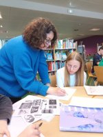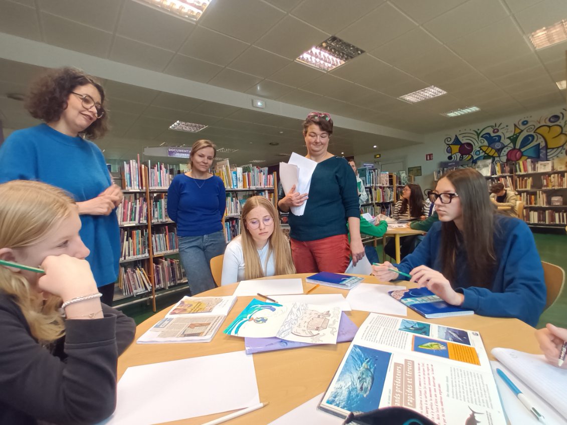 Dans le cadre de la classe presse, les 4e se sont rendus le jeudi 13 mars, à la bibliothèque Louis Lansonneur de La Glacerie, pour rencontrer l’illustratrice Sarah Fouquet.